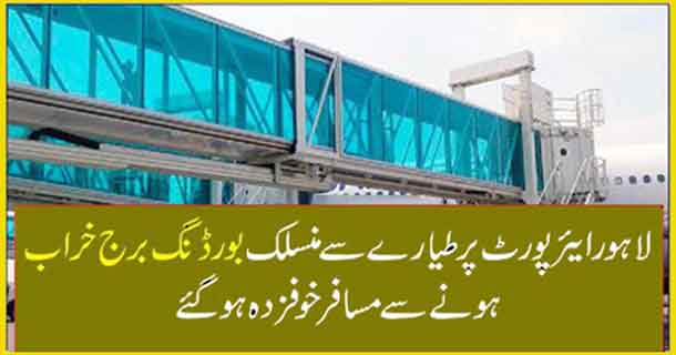 لاہور:صوبہ پنجاب کے دارالحکومت لاہور میں علامہ اقبال انٹرنیشل ایئرپورٹ پر طیارے سے منسلک بورڈنگ برج خراب ہوگیا جس سے مسافروں میں خوف و ہراس پھیل گیا۔تفصیلات کے مطابق لاہور کے علامہ اقبال انٹرنیشل ایئرپورٹ پر طیارے سے منسلک بورڈنگ برج خراب ہوگیا، مسافروں کے سوار ہونے کے بعد بورڈنگ برج طیارے سے الگ نہیں ہوا۔ اس موقع پر بورڈنگ برج میں خرابی کو مسافر، طیارے میں خرابی سمجھ بیٹھے اور ان میں خوف و ہراس پھیل گیا۔ کچھ مسافر خوف کے باعث طیارے سے اتر گئے۔