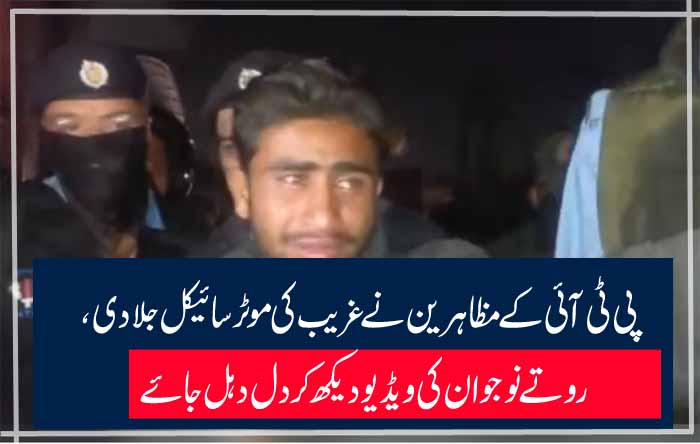 پی ٹی آئی کے مظاہرین نے غریب کی موٹر سائیکل جلا دی، روتے نوجوان کی ویڈیو دیکھ کر دل دہل جائے