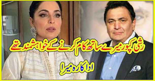 فلم نظر کی شوٹنگ کے دوران ممبئی میں میری ان سے ملاقات ہوئی۔ان کا انداز گفتگو بہت اچھا تھا اور میرا ان کے ساتھ بہت اچھا وقت گزرا۔انہوں نے میرا کام دیکھا اور اس کی تعریف کی۔رشی کپور نے مجھے کہا کہ تمہیں اپنے جیسے بڑے اداکاروں کے ساتھ کام کرنا چاہیے۔اداکارہ میرا نے مزید کہا کہ رشی کپور نے میرے ساتھ کام کرنے کی خواہش ظاہر کی۔ میری بھی خواہش تھی کہ میں ان کے ساتھ کام کرتی۔