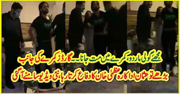 لاہور : اداکارہ عظمیٰ خان پر تشدد کرنے والی خاتون آمنہ کا شوہر عثمان عظمیٰ خان کا دفاع کرتا ہے،معاملےکی ایک مزید ویڈیو سامنے آ گئی ۔ تفصیلات کے مطابق درجن مسلح گارڈز کے ساتھ اداکارہ عظمیٰ خان کے گھر پر دھوا بولنے والی خاتون آمنہ کا شوہر حملے کے وقت بھی عظمیٰ خان کا دفاع کرتا رہا۔ ویڈیو میں دیکھا جا سکتا ہے کہ خاتون آمنہ کے ساتھ آئے گارڈز نے عثمان کو بھی پکڑ لیا ۔ تاہم عثمان نے کہا کہ مجھے گولی مارنی ہے تو مار دو ، کمرے میں کوئی مت جائے ، اسی دوران کچھ گارڈز نے کمرے میں داخل ہونے کی کوشش کی جس پر عثمان نے چیختے ہوئے ان کو کہا کہ اندر مت جانا مجھے گولی مار دو۔ ویڈیو میں خواتین کو ہنگامہ آرائی کرتے بھی دیکھا جا سکتا ہے ۔ اسی دوران گارڈز کی جانب سے دروازہ توڑ دیا گیا ۔