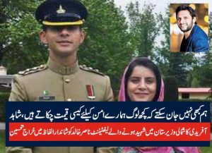 لاہور (ویب ڈیسک) قومی ٹیم کے سابق کپتان شاہد آفریدی نے گزشتہ روز شمالی وزیرستان میں شہید ہونے والے لیفٹیننٹ ناصر خالد کو شاندار الفاظ میں خراج تحسین پیش کیا۔